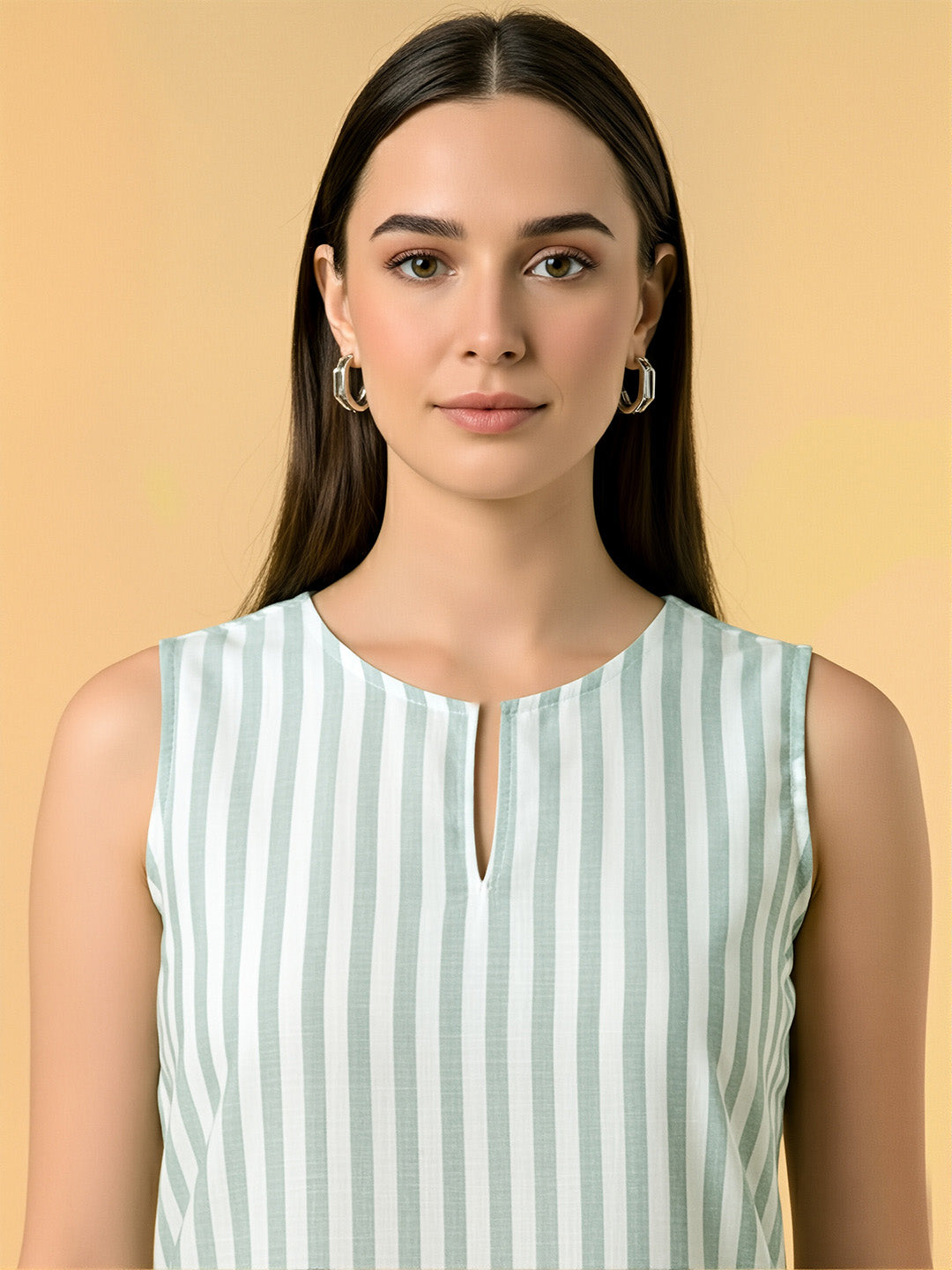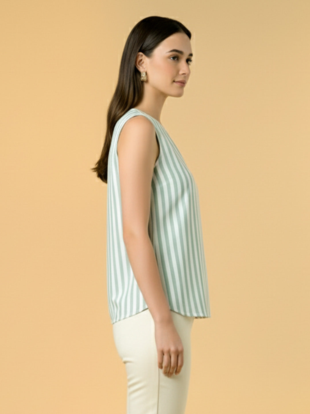 Striped White & Green Top