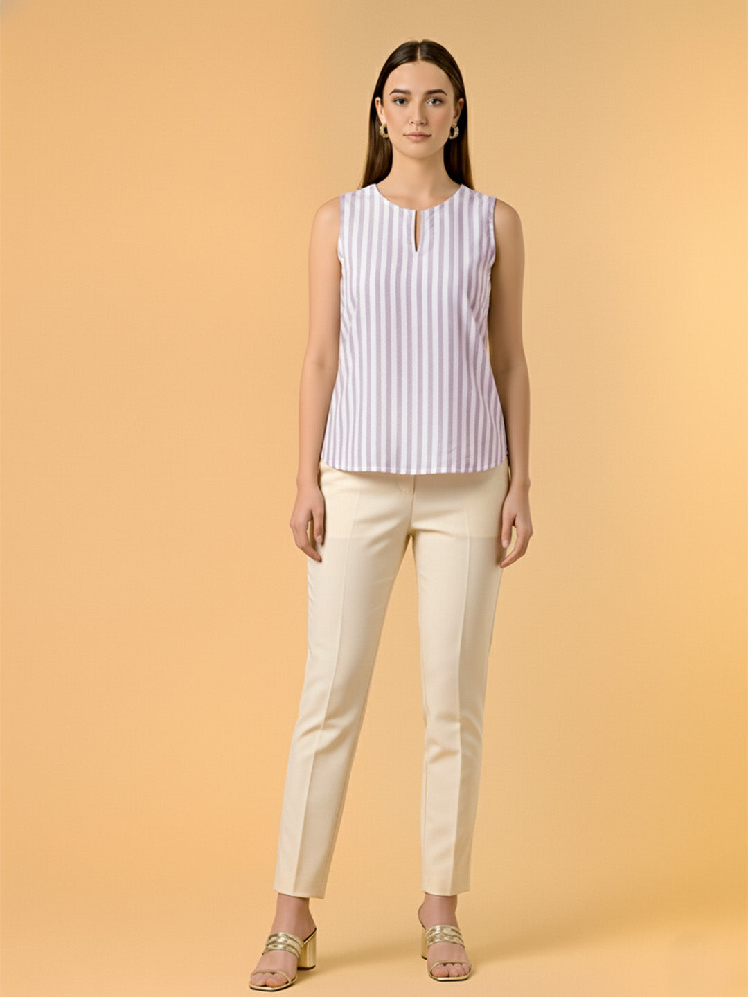 Striped White & Purple Top